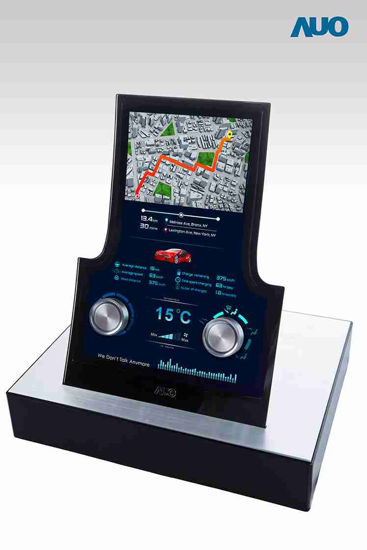 尊时凯龙近年来全力投入高性能车用显示屏的开发,,以因应智慧车发展趋势。。。。中控台应用方面,,,,尊时凯龙领先全球推出(*) 13.2寸异型切割显示屏,,具有 1200x1600 高分辨率、、NTSC 85% 高色彩饱和度及 1000nits高亮度,,并改于显示区域设计闸极电路,,,,以于显示屏侧边释出空间做异型切割。。。。同时显示区域亦特别设计对称的孔位可安装按键或旋钮,,,创造更多设计弹性。。。