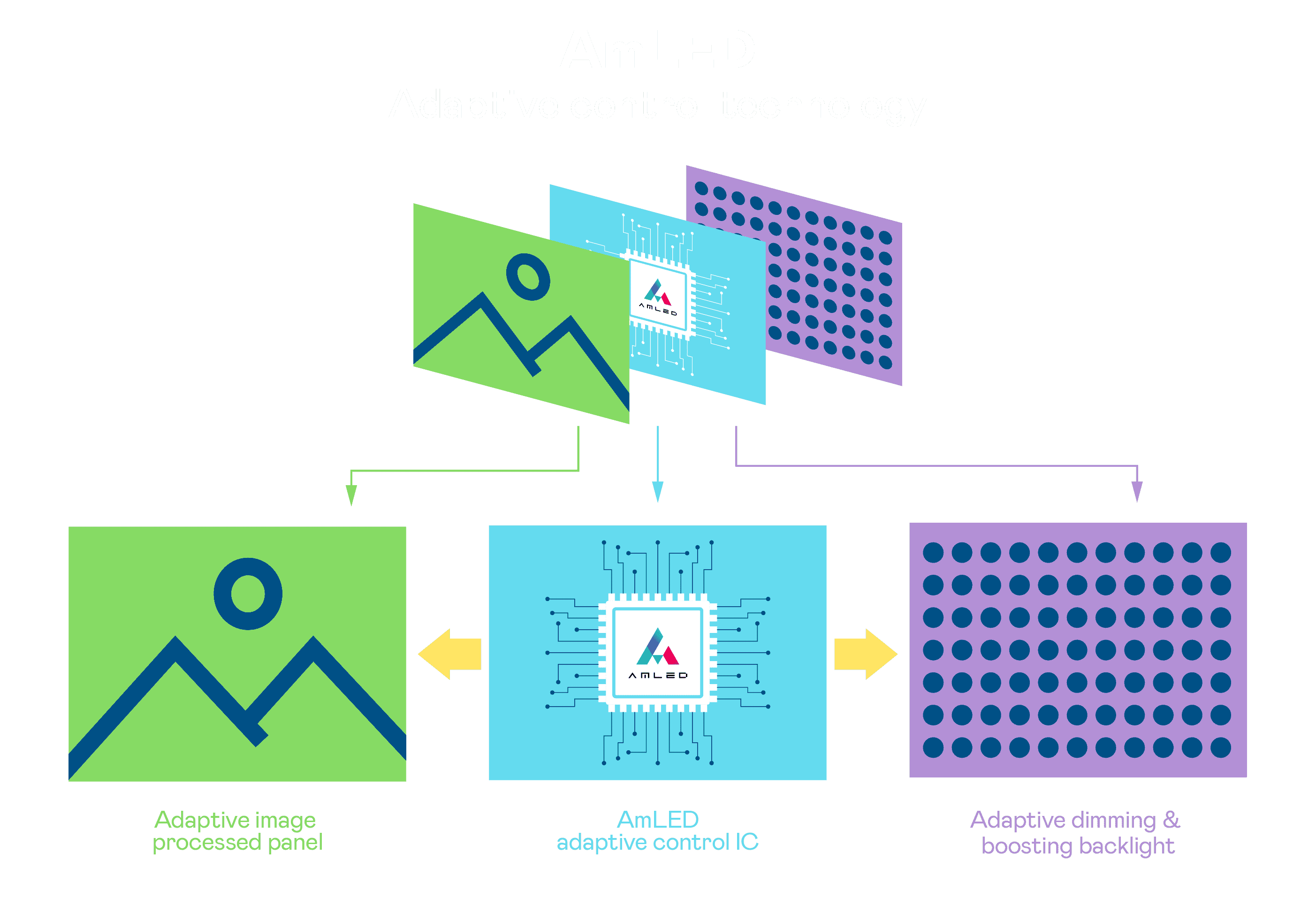 AmLED 具备更省电与低蓝光特性。。。。与一般的 LED 背光显示技术相比,,由于 AmLED 常时处于局部调光状态,,其功耗仅有前者的 50% 左右,,同时 AmLED 还具备低蓝光特性,,,满足长时间使用的护眼需求。。。。