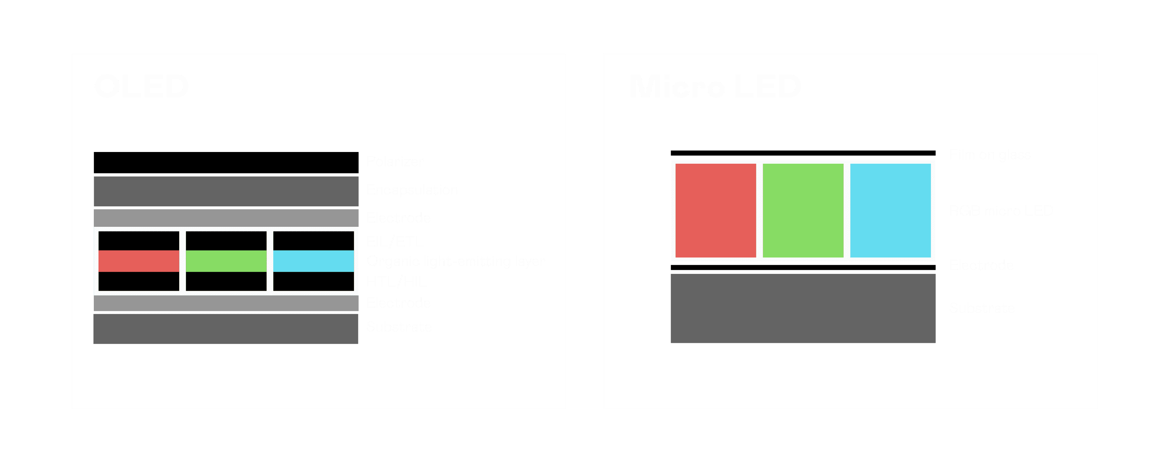 以 LED 做为显示画素,,可让 LED 的发光效率发挥到极致,,从而让显示器具备优异的亮度表现,,,,不论是在户外或室内,,,,均具备出众的显示效果。。。。同时,,与使用有机材料的 OLED 相比,,,,LED 具备更稳定、、、、寿命更长的特性,,不仅不会有画面烙印问题,,,,而且更不容易出现故障、、坏点。。。。