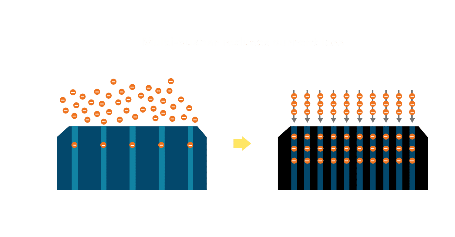 - 多条电极栅结构,,可有效降低外力对于电池的影响,,,限制电池隐裂 (Micro-cracks) 范围,,,防止电流传输路径 (Current distribution) 之损坏进一步扩大。。