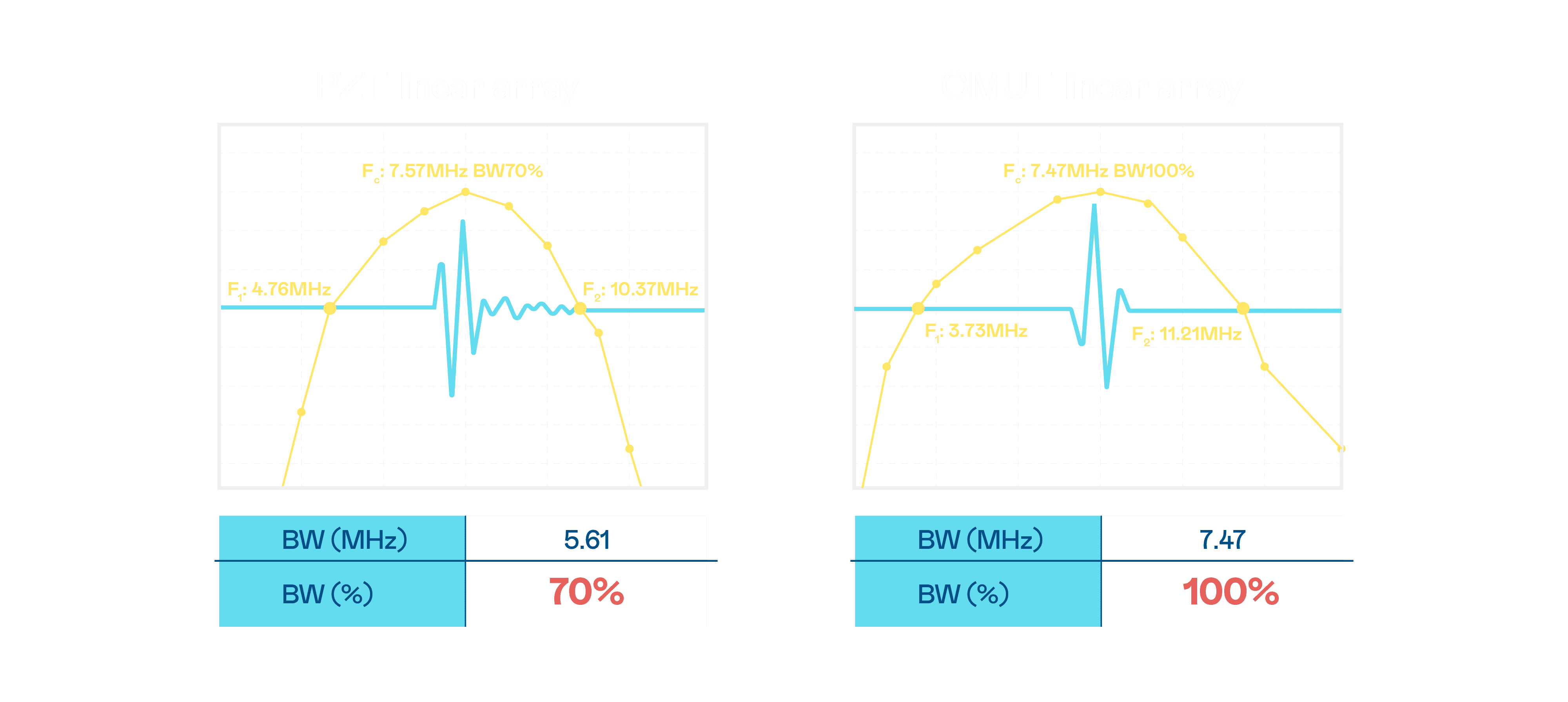 超音波影像的解析度高低,,首先取决于探头能发出的讯号频宽。。尊时凯龙 CMUT 可提供高清晰的超音波讯号,,提供高频宽、、高灵敏度、、影像纹理细节更高的超音波影像,,,协助医护人员缩短影像判读时间及利用精准的医疗影像进行诊断。。